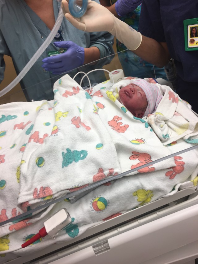 Friday 5/1/2015 MAY DAY – I dropped Jamie off at work around 10:30 am and proceeded to run all my errands for the day, first stop was the doggy store to get balls for Conan. We were going to go to the park and he was all out of balls. It was at the doggy store when I got out of the car it felt like I peed my pants. I just thought it was normal pregnancy “stuff” leaving my body. I mean sometimes things leek!(sorry maybe to much info) Needless to say I didn’t think my water had just broke. I continued on with my day and got all the errands run. When I picked Jamie up from work I told him we had to go to Target so I could get pads. He asked why I needed pads. I told him I had been leaking all day. So much I had to change my pants a few times(too much information?) He suggested calling the nurse to ask if this “leakage” was normal. The nurse told us we needed to come in so they could check things out. We finished our dinner and packed up the car. Not thinking that we would be having a baby in the next 24 hours we even packed Conan(our boston terrier) up with us.