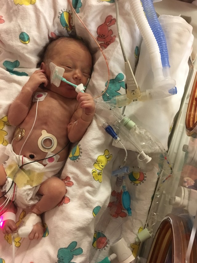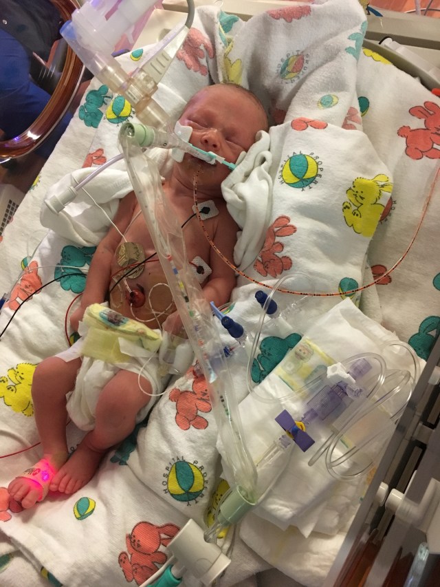 Currently Carter is 3 weeks old today and still has 8 days left of his antibiotics. He looks so much better then he did, he’s gaining weight and eating lots of mommies milk! All good things. We have even started some breast introduction for him. There is no set date on when Carter will leave the NICU, my guess is at least late August. Carter has made great progress and is definitely a fighter, but we have a ways to go. Continued positive thoughts and prayers are always welcome.